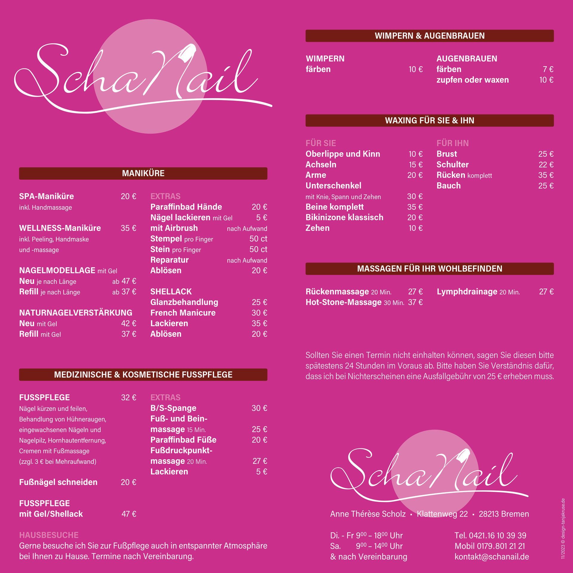 Telefon: 0421 - 16 10 39 39 · E-Mail: kontakt@schanail.de
